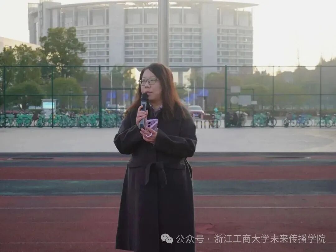 人文学院党委副书记张捷老师作总结发言。她指出,今年是中国人民抗日战争胜利80周年,举办此次主题升国旗仪式,既是回望烽火岁月、铭记民族抗争史的重要举措,更具传承红色基因、凝聚奋进力量的深远意义。她希望同学们以此次活动为契机,将历史记忆熔铸于心,转化为砥砺前行的不竭动力。此外,她还就校园安全防护、交通出行规范、期末诚信考试等事宜作出细致叮嘱,强调要严守纪律、杜绝舞弊。最后,她勉励同学们深耕学业、笃行不怠,以青春之力担时代之责,不负师长期许与家国厚望。