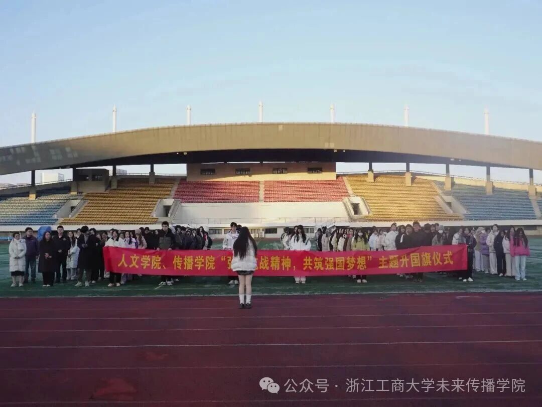 凛冬已至,朔风凝志;晨光破晓,国旗高扬。1215日,学院24级全体同学早早齐聚第一田径场,进行“弘扬抗战精神,共筑强国梦想”主题升国旗仪式,本次升旗仪式由尹一涵同学主持。出席此次活动的有人文学院党委副书记张捷、传播学院党委副书记徐宝见、人文学院学办主管王阳光、传播学院团委书记黄凡,以及受邀发言的学生代表祝之淮、王璐琳。