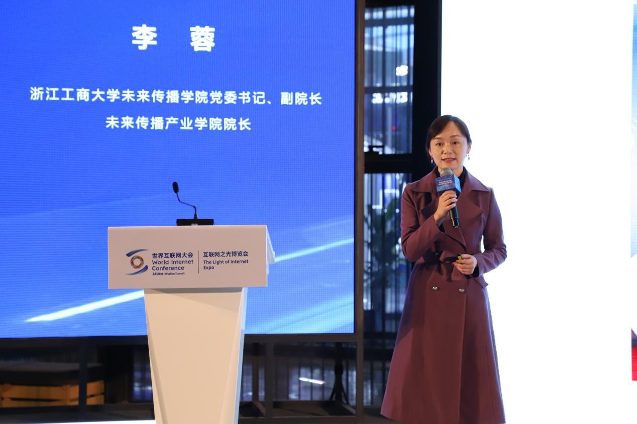 图为未来传播学院党委书记、未来传播产业学院院长李蓉作主题发言