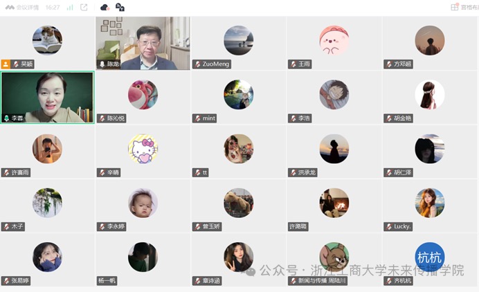 2025年10月29日晚上,博士生导师、苏州大学传媒学院执行院长、教育部长江学者特聘教授、国务院政府特殊津贴专家、中国传播学研究会副会长陈龙教授于线上开展了题为《数智时代的工程社会性与知识生产新模式》讲座。此次讲座由学院党委书记李蓉教授主持,网新系主任李骏,新闻传播专业教师吴颖、左蒙、蒋三军、郑宏民和25级新传研究生参与了此次讲座。