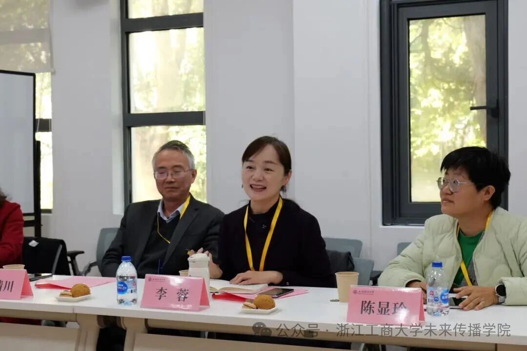 本次论坛特设两场圆桌论坛,分别就经济信息传播研究与教育主题进行研讨,其中“经济信息传播教育主题研讨”圆桌论坛由上海财经大学教授林晖教授主持,中南财经政法大学吴玉兰、上海大学王晴川、浙江工商大学李蓉、闽南师范大学王强、深圳大学陈显玲同台研讨。李蓉结合未来传播学院的探索与实践,做了《媒商智融 三域协同:面向未来的商科模式新闻传播类人才培养模式探索与实践》发言,介绍在数智时代背景下,未来传播学院优化专业布局的思考与规划,其发言紧密呼应论坛对人才培养转型的关注。