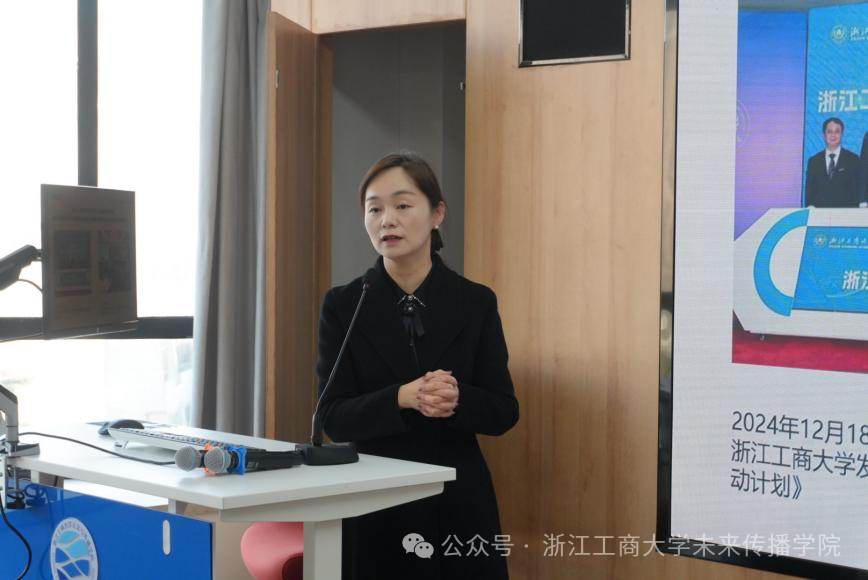 交流会伊始,李蓉对未来传播学院进行介绍。她表示,学院以新文科建设为导向,紧密切合人工智能快速发展的时代趋势,立足行业前沿需求,从重点布局建设、专业学科基础等多个维度展开规划。