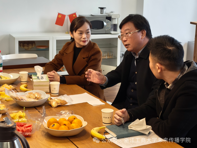 党课结束后,胡金生书记与“三联系”学生开展师生餐叙。针对学生未来发展规划困惑,他结合就业形势、政策导向与专业特点,梳理考研、公考、就业等多元路径,提供针对性意见建议。结合热门IP案例,指出高质量文化输出对提升文化软实力的重要性,鼓励学生深耕文化底蕴、创作优质内容、唱响时代新声。