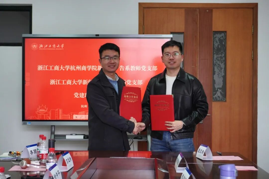 为深入学习贯彻新时代党的建设总要求,探索党建与学科建设深度融合路径,3月27日,浙江工商大学杭州商学院新闻与广告系教师党支部与浙江工商大学新闻传播学科教师党支部在下沙校区举办党建联建交流会,并签署党建联建协议书。
